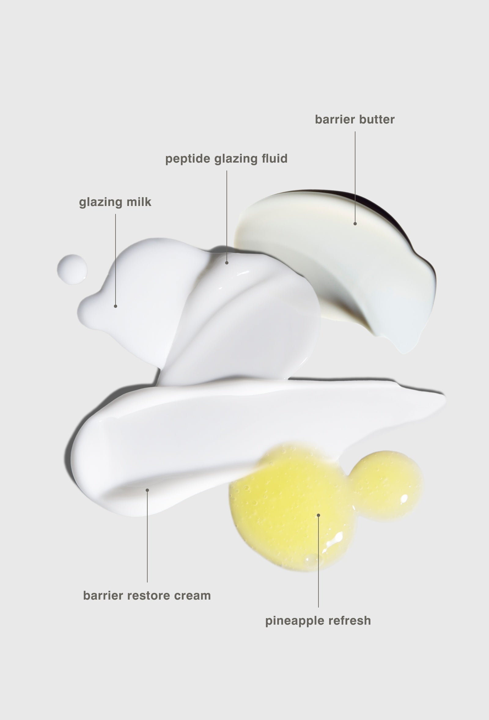 Includes 5 products: Little Pineapple Refresh (40mL / 1.35 fl oz), Little Glazing Milk (65mL / 2.2 fl oz), Little Peptide Glazing Fluid (15mL / 0.5 fl oz), Little Barrier Restore Cream (30mL / 1.0 fl oz), and Little Barrier Butter (40mL / 1.35 fl oz).